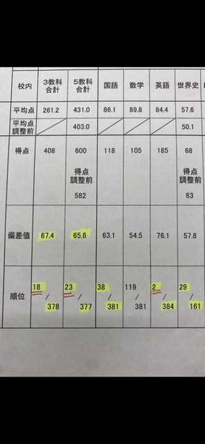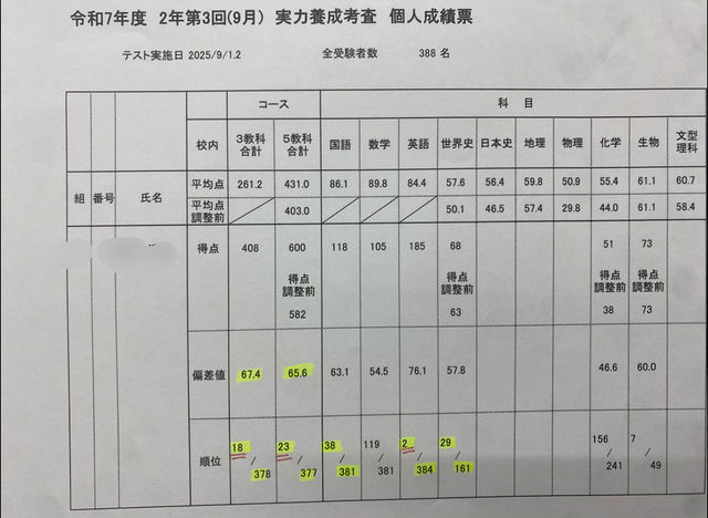 岡崎高校2年生の女の子、学年23位(※3教科なら17位)おめでとう!!!