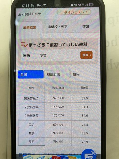 スマホの画面をスマホで撮影するという荒業ですみません(まだ紙では返ってきてないようです)。