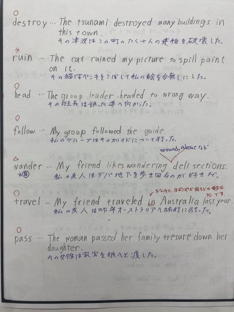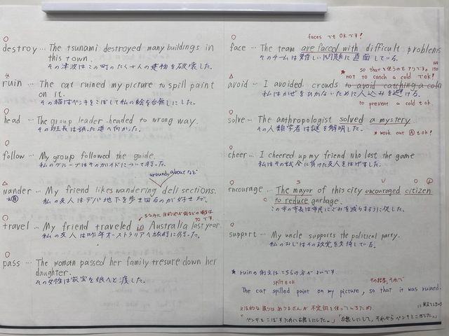 ①動詞を中心に取り組む(自動詞と他動詞を意識しながら)
