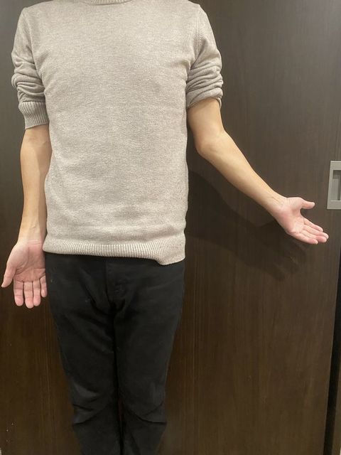 よく分からないかもしれませんが、肘が変な方に曲がっていて、いわゆる『気を付け』のポーズができません。