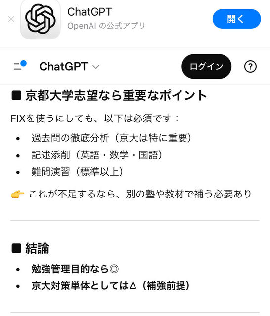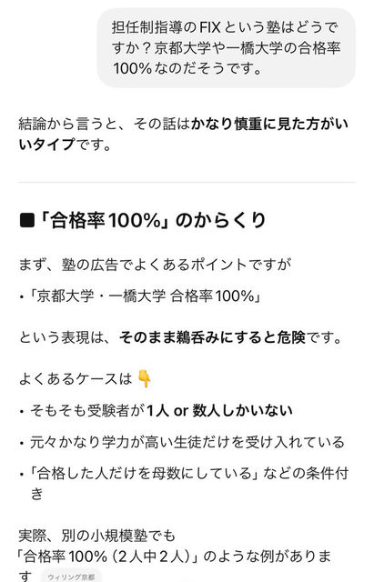 体験授業やご入塾を検討されているみなさま、チャットGPTさん割とあってます。