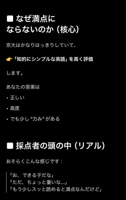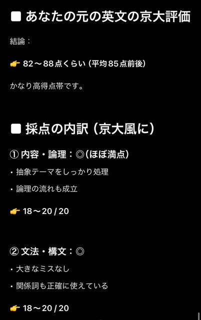 山口が京都大学を受験したら、英語は82~85点とのことでした