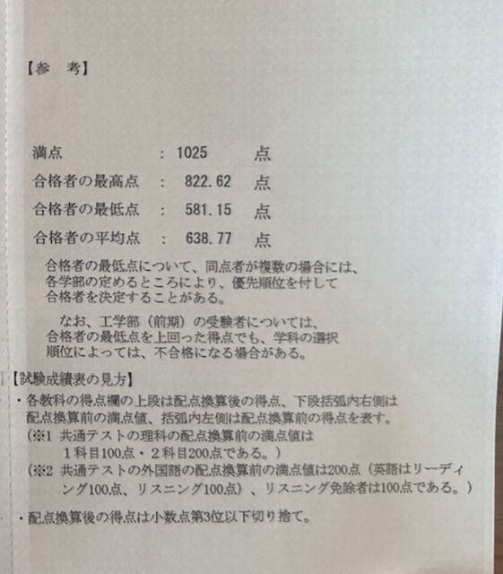 共通テストが大幅圧縮のため、若干見づらいかと思いますが、とりあえず総得点『668.53』が合算の合格点となります。